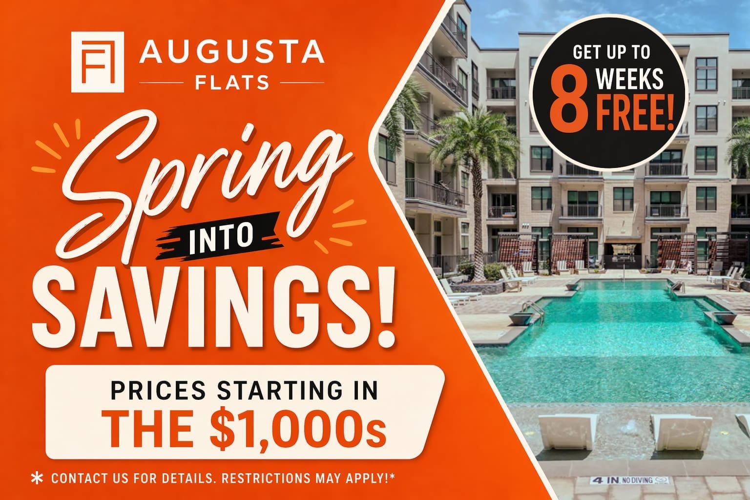 Discover a refined living experience at Augusta Flats with our studio, 1, and 2-bedroom homes, featuring soaring ceilings up to 15 feet high, plank flooring, and oversized closets. Indulge in our rooftop lounge with breathtaking city views, relax by the resort-style pool, or stay active in our state-of-the-art fitness center. With pet-friendly spaces and luxurious amenities designed to elevate your lifestyle, our dog-friendly apartments in Downtown San Antonio, TX, offer the perfect balance of comfort and sophistication. Schedule your private tour today!
